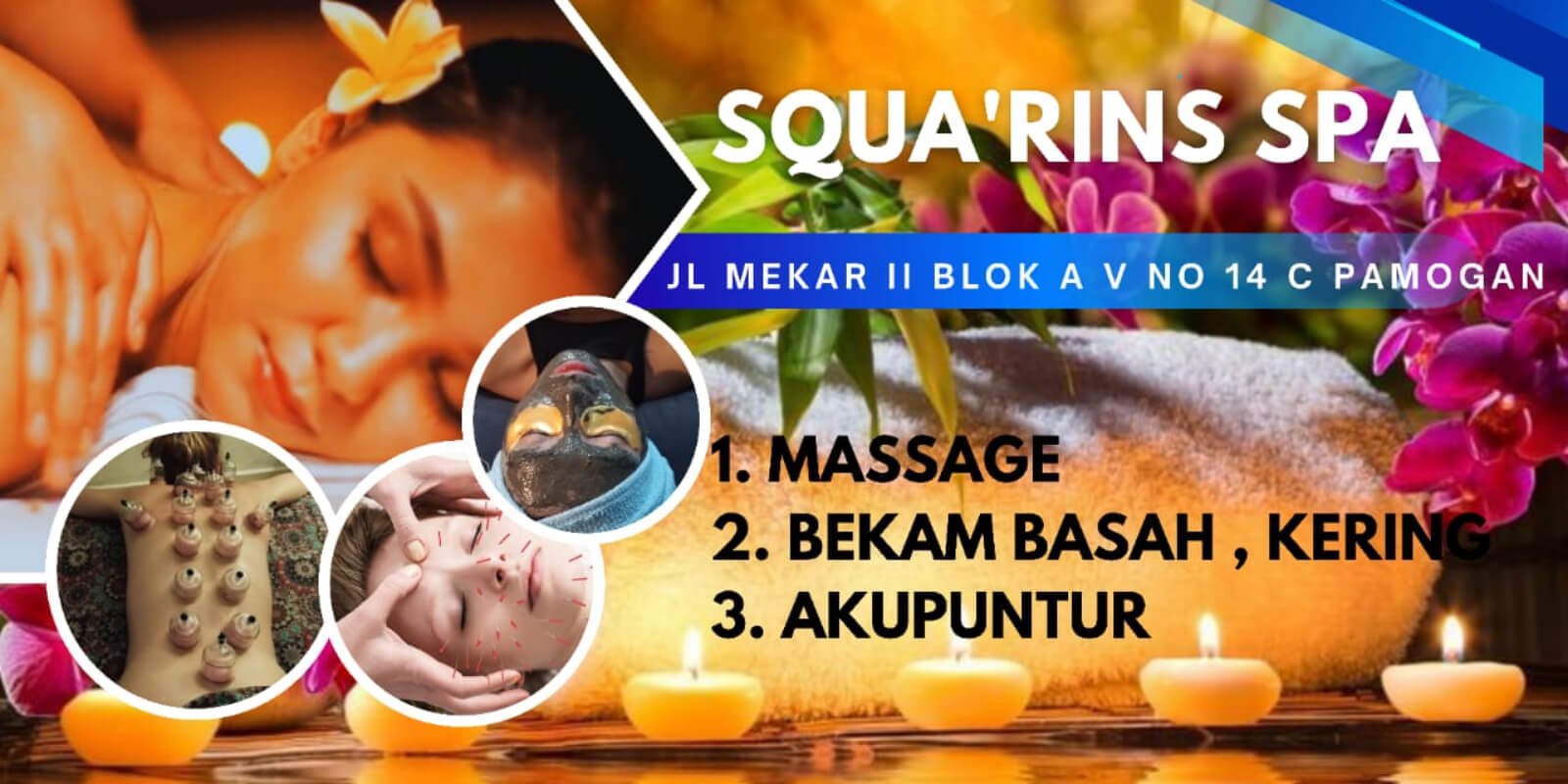 Squa’rins spa Bali menyediakan berbagai layanan massage teraupatik, dan relaksasi yang menyegarkan, untuk membantu anda bersantai, dan memanjakan diri. Dengan terapist yang terampil dan berpengalaman di bidang massage, kami menggunakan teknik kombinasi, tradisional dan modern, untuk memberikan kenyamanan massage, yang memenuhi kebutuhan, pelanggan.